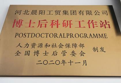 2020年河北晨陽工貿集團被批準設立博士后科研工作站
