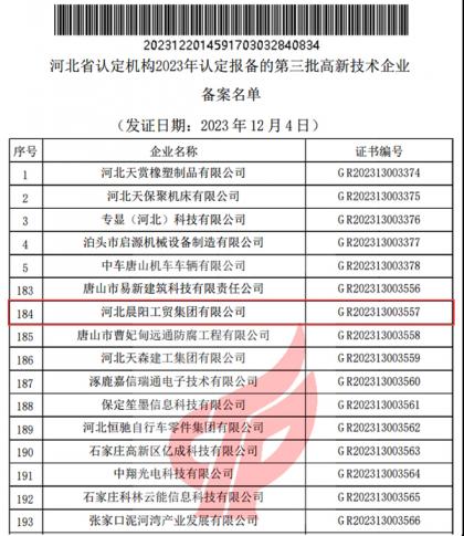 2018年河北晨陽工貿集團技術中心獲評“國家企業技術中心“