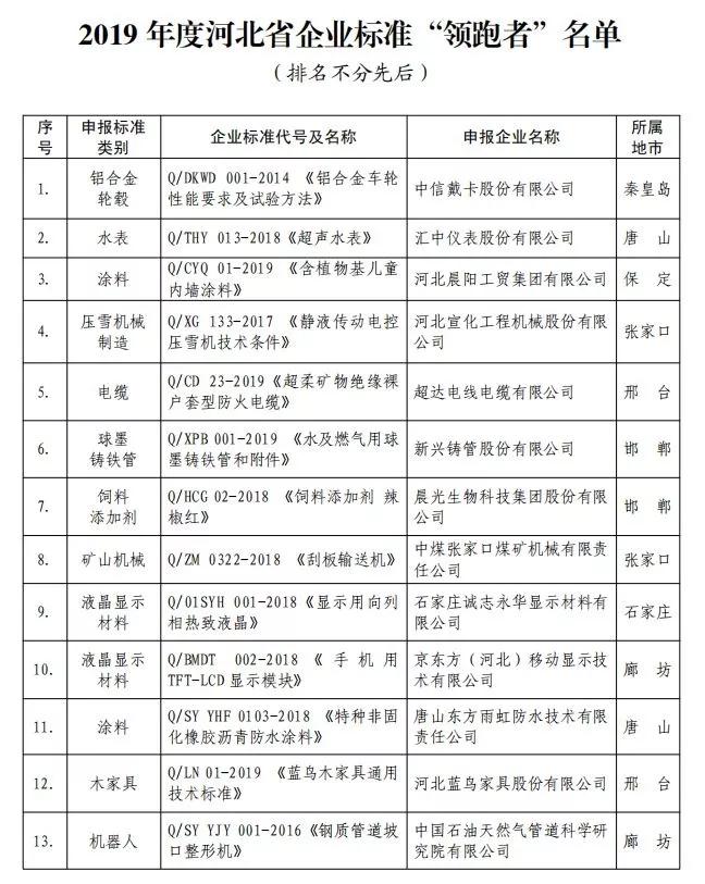 企業標準“領跑者”制度是通過高水平標準引領,增加中高端產品和服務有效供給,支撐高質量發展的系列鼓勵性政策。旨在助推河北質量強省和標準化戰略深入實施,積極營造“生產看標準領跑者企業,消費選標準領跑者產品”的市場氛圍,促進標準、質量、品牌、信譽聯動提升,帶動相關產業高質量健康發展。